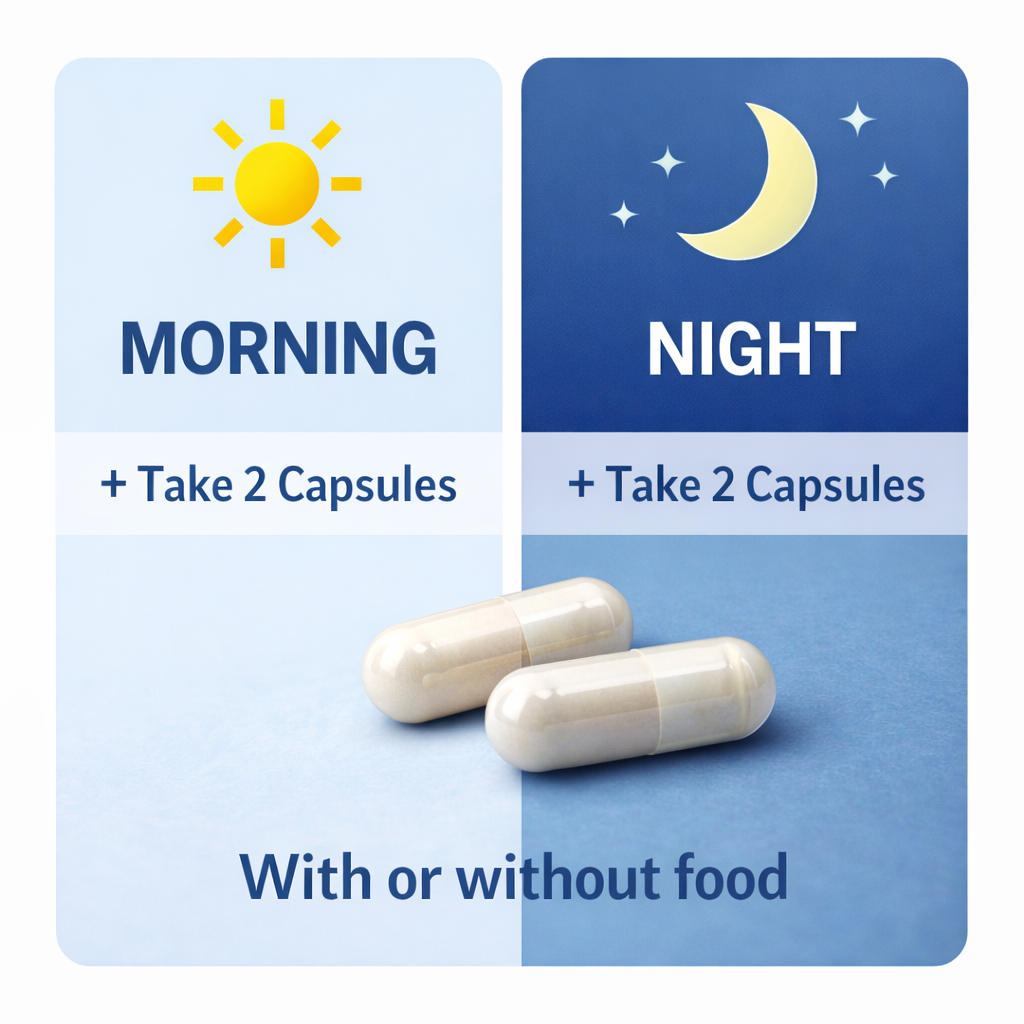 Morning: Take 2 capsules when you wake up